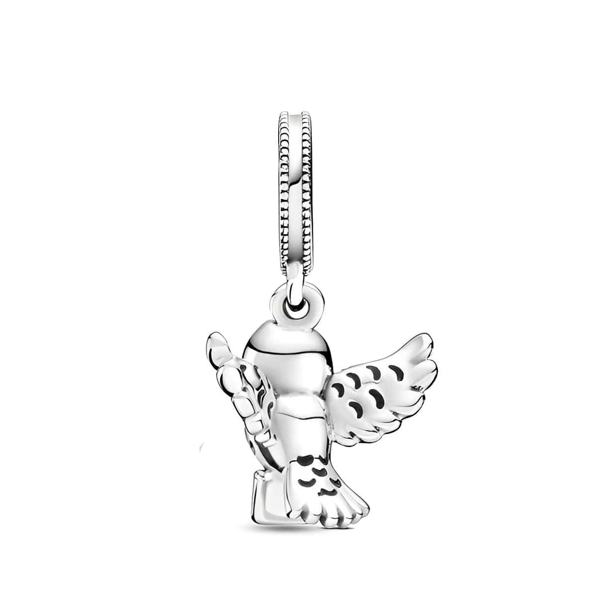 Harry Potter Hedwig Sallantılı Tılsım, Hedwig'in uçuştaki zarif duruşunu sergileyen, son derece detaylı bir tasarıma sahip. Kar beyazı tüyleri göz alıcı bir şekilde işlenmiş ve mektuptaki minik kırmızı mühür, çarpıcı bir renk ve anlam katıyor. Bu parça, yalnızca Harry'nin hikâyesinin değil, aynı zamanda her hayranın Hogwarts'tan kendi kabul mektubunu hayal ederken hissettiği umut ve merakın da bir simgesi. Sallantılı tasarımı, Hedwig'in özgürce hareket etmesini sağlayarak bileziğinizdeki veya kolyenizdeki varlığını daha da gerçekçi kılıyor.